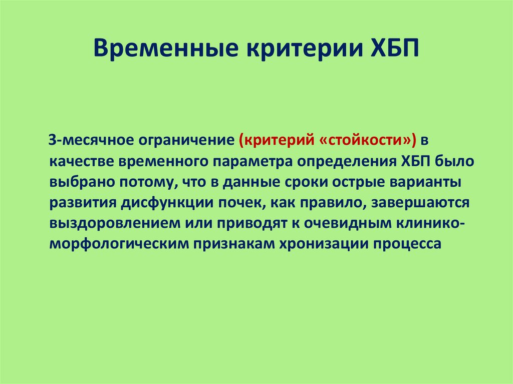 Временные критерии ХБП3-месячное ограничение (критерий «стойкости») в
