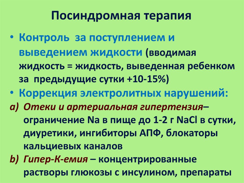 ограничение Na в пище до 1-2 г NaСl в сутки,