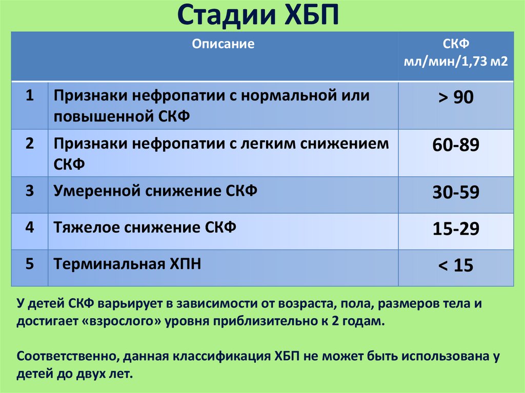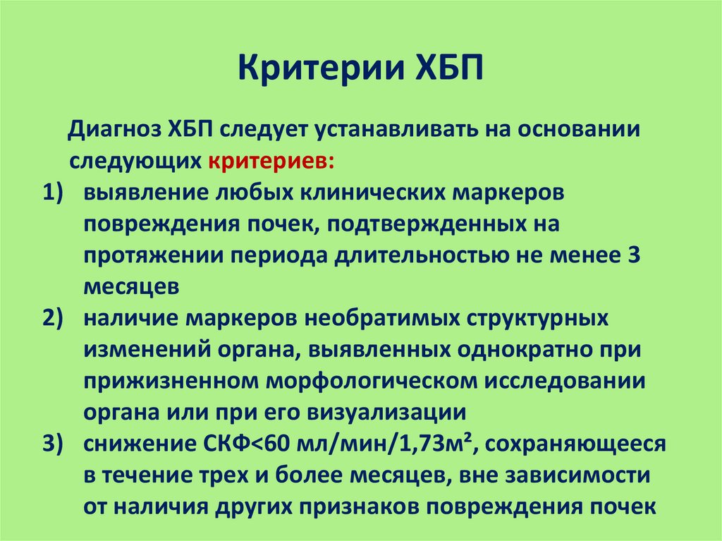 Критерии ХБПДиагноз ХБП следует устанавливать на основании