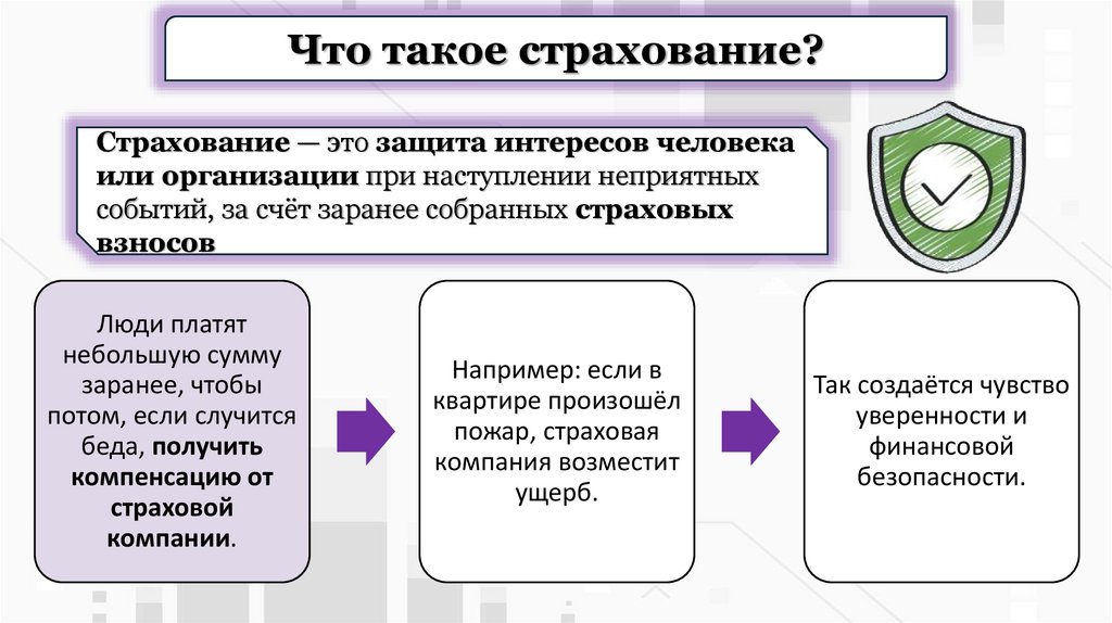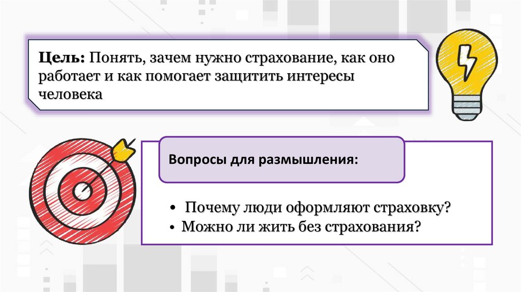 Цель: Понять, зачем нужно страхование, как оноработает и как помогает защитить интересы