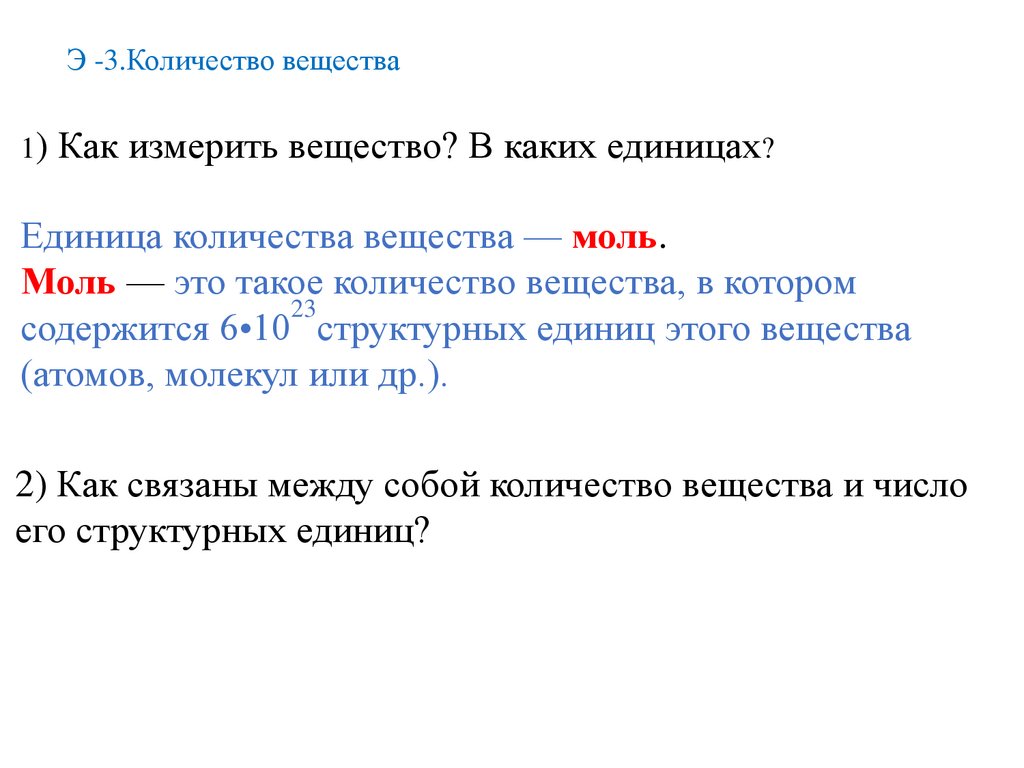Э -3.Количество вещества1) Как измерить вещество? В каких единицах?