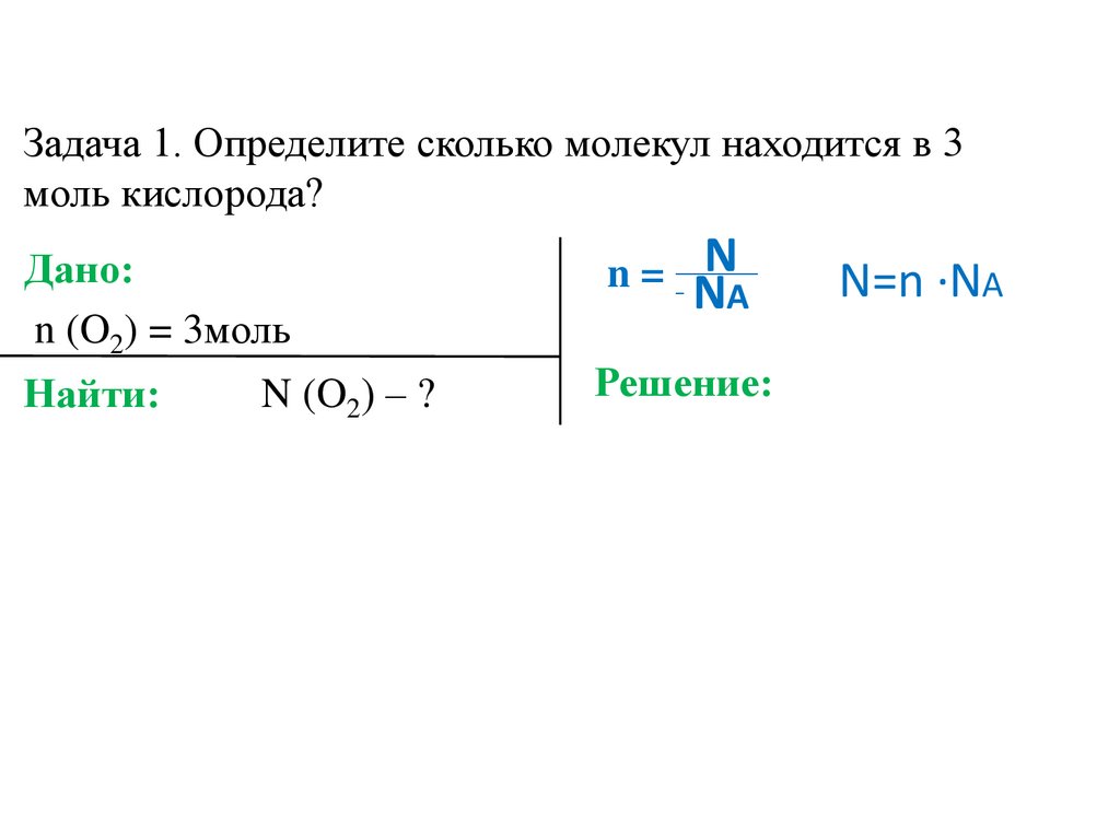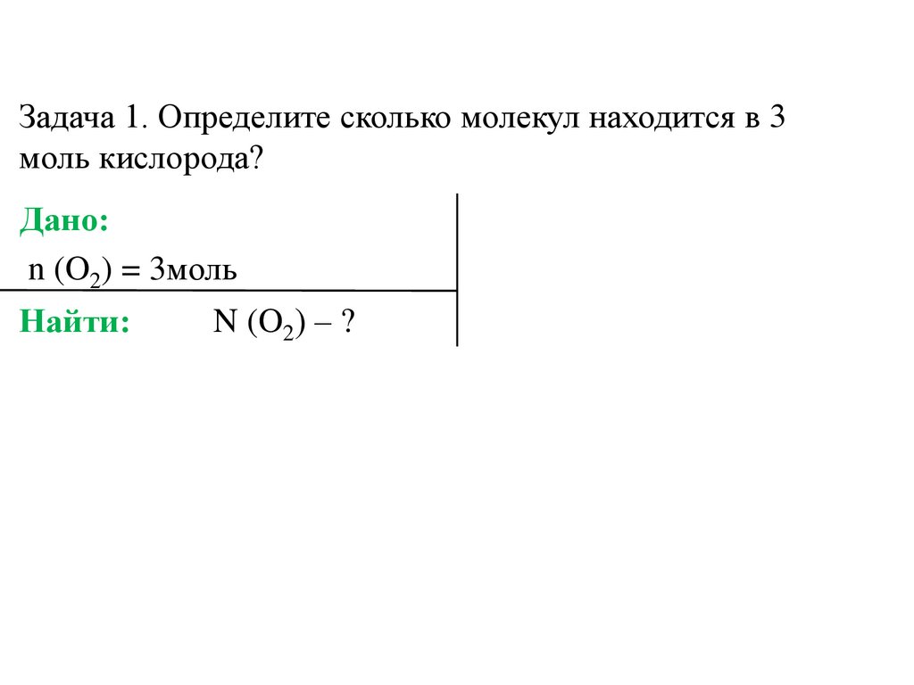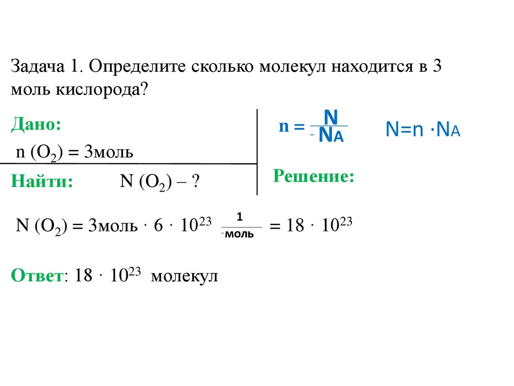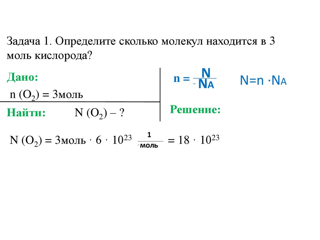 Задача 1. Определите сколько молекул находится в 3моль кислорода?
