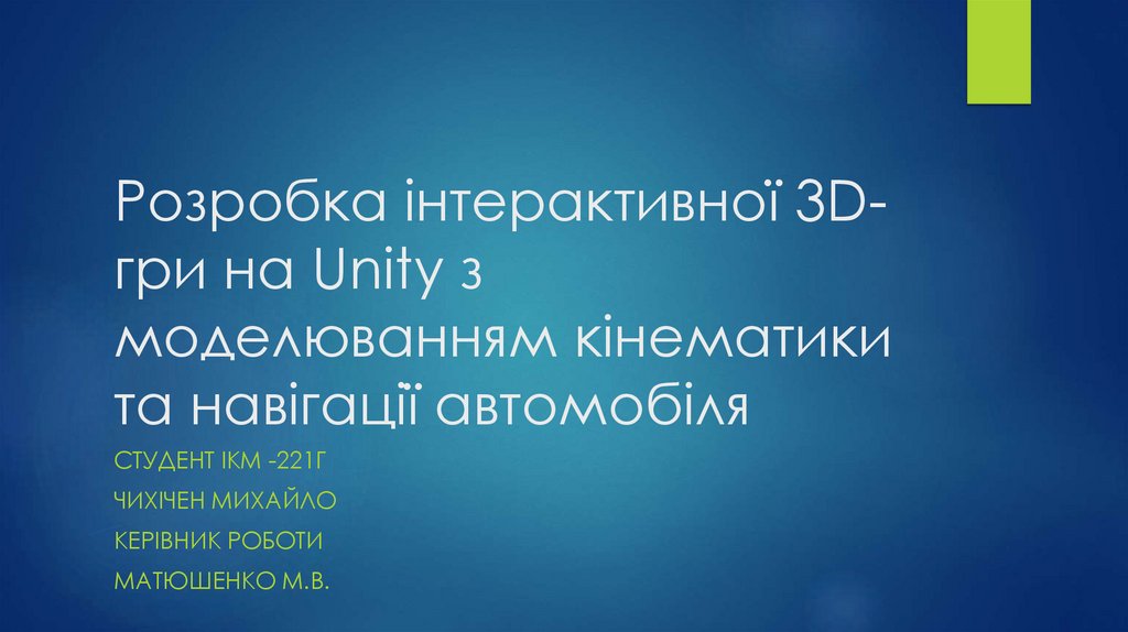 1. Розробка інтерактивної 3D-гри на Unity з моделюванням кінематики та навігації автомобіля