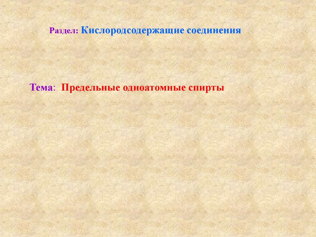 Раздел: Кислородсодержащие соединенияТема: Предельные одноатомные спирты