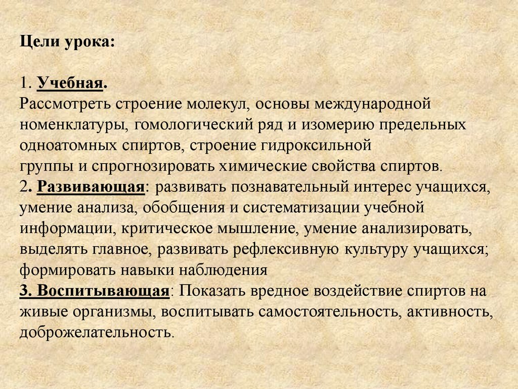 3. Воспитывающая: Показать вредное воздействие спиртов на