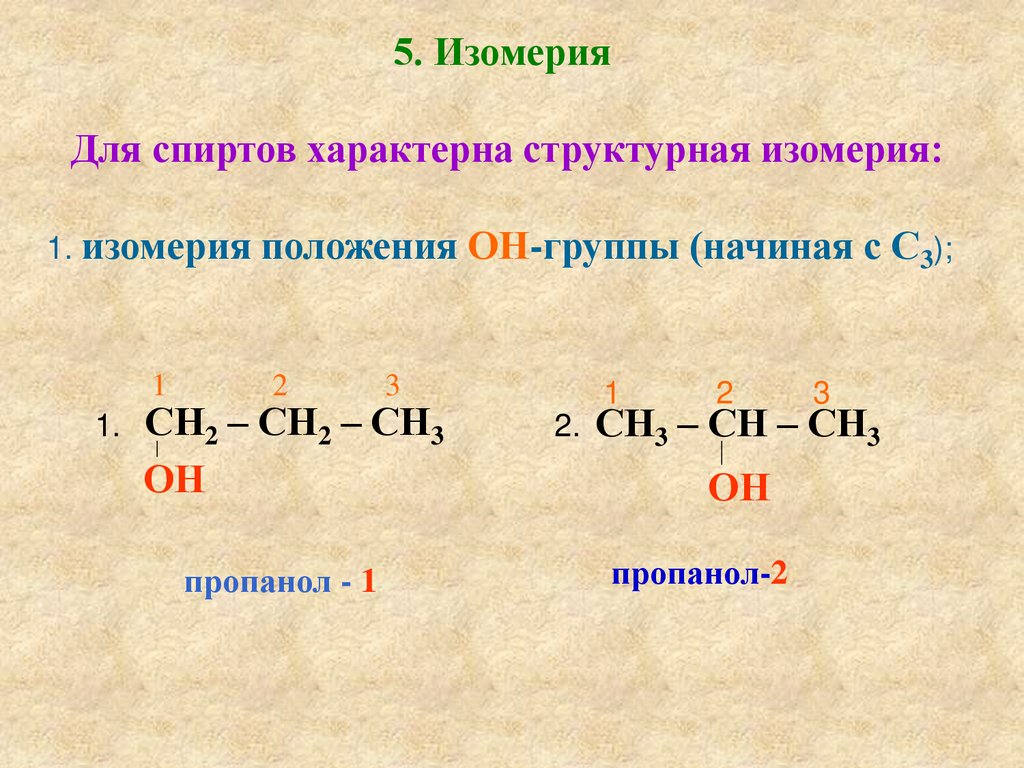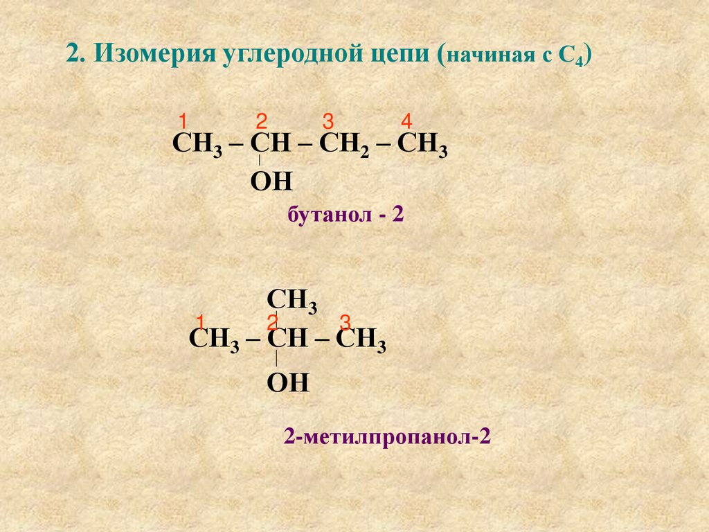 5. ИзомерияДля спиртов характерна структурная изомерия:
