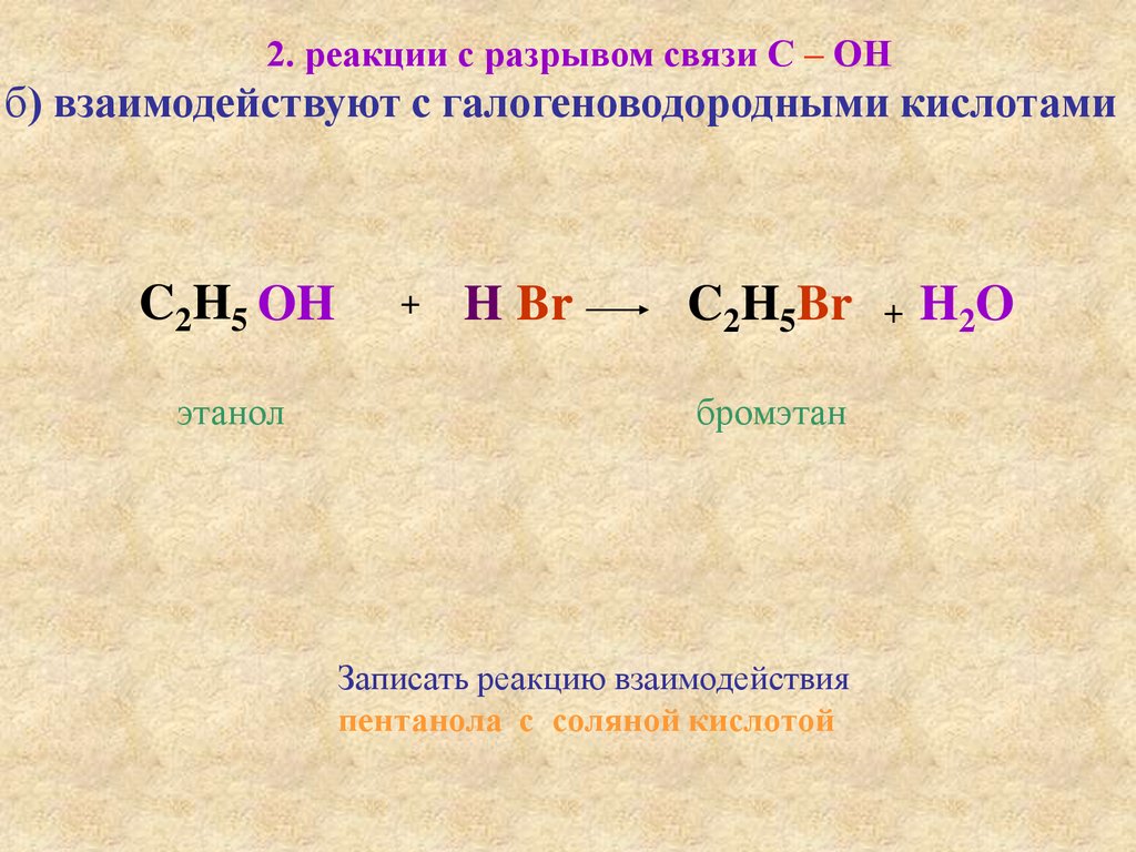 2. реакции с разрывом связи С – ОНб) взаимодействуют с галогеноводородными кислотами