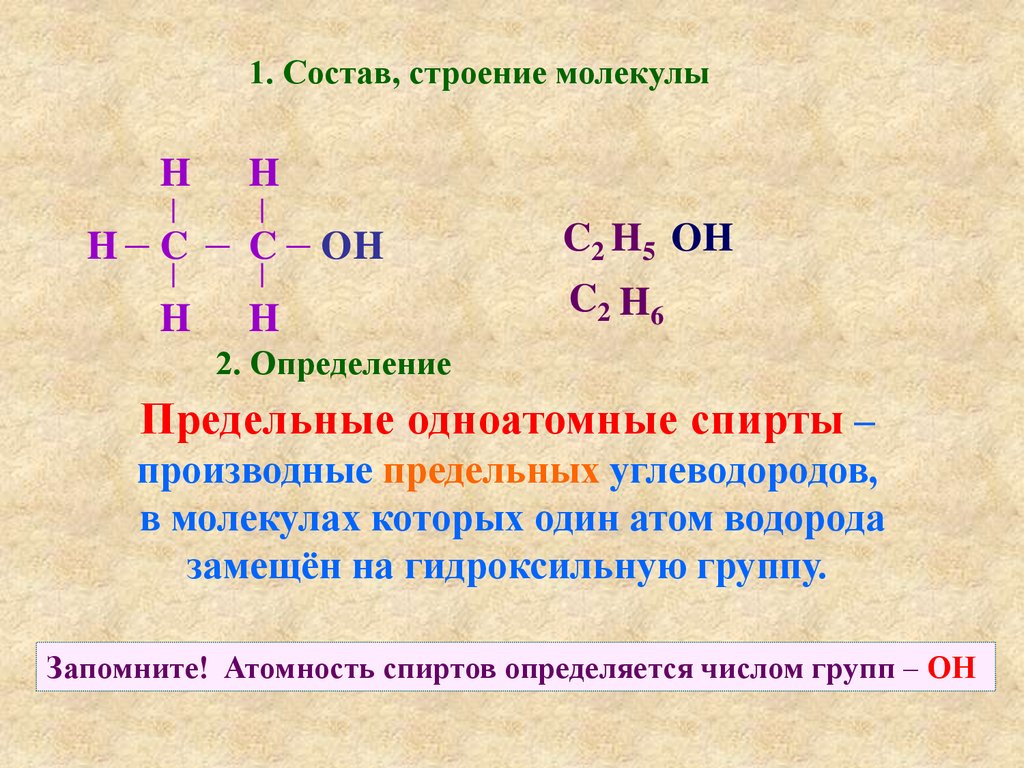 Запомните! Атомность спиртов определяется числом групп – ОН