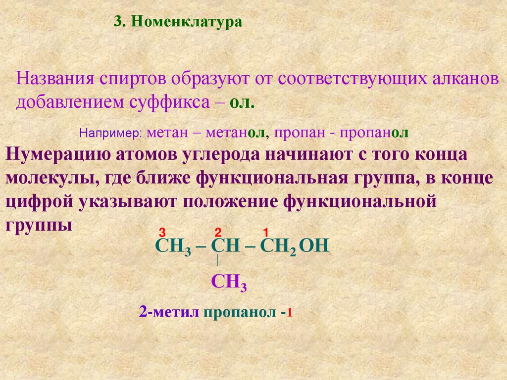 3. НоменклатураНазвания спиртов образуют от соответствующих алканов