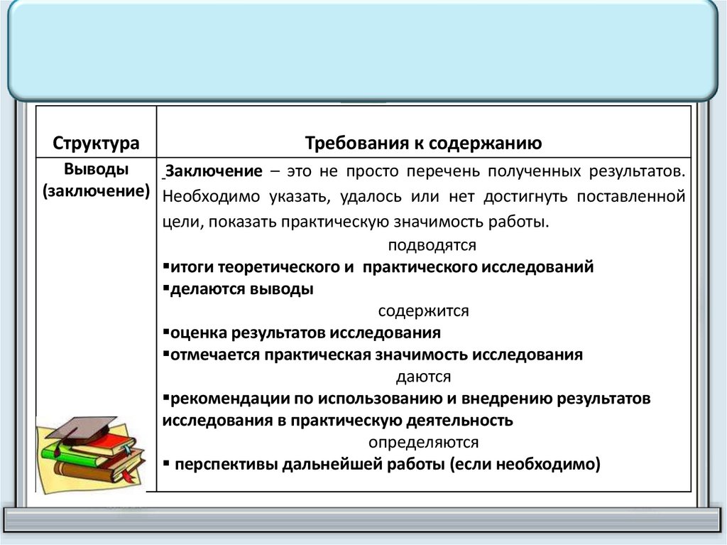 Выразить в ней главное содержание всего исследования,обозначить объект и предмет исследования.