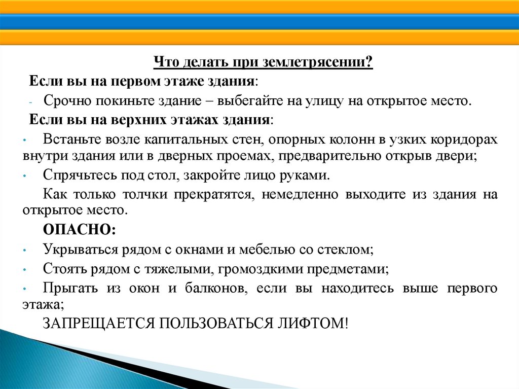 Что делать при землетрясении?Если вы на первом этаже здания: