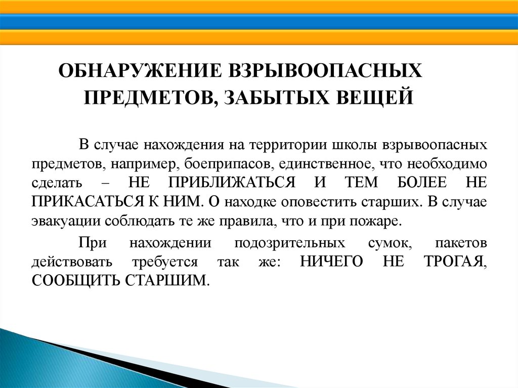 ОБНАРУЖЕНИЕ ВЗРЫВООПАСНЫХПРЕДМЕТОВ, ЗАБЫТЫХ ВЕЩЕЙ