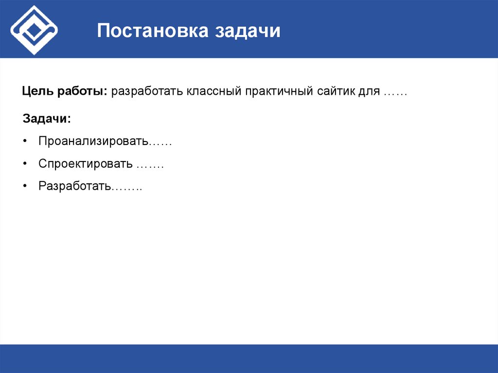 Постановка задачиЦель работы: разработать классный практичный сайтик для ……