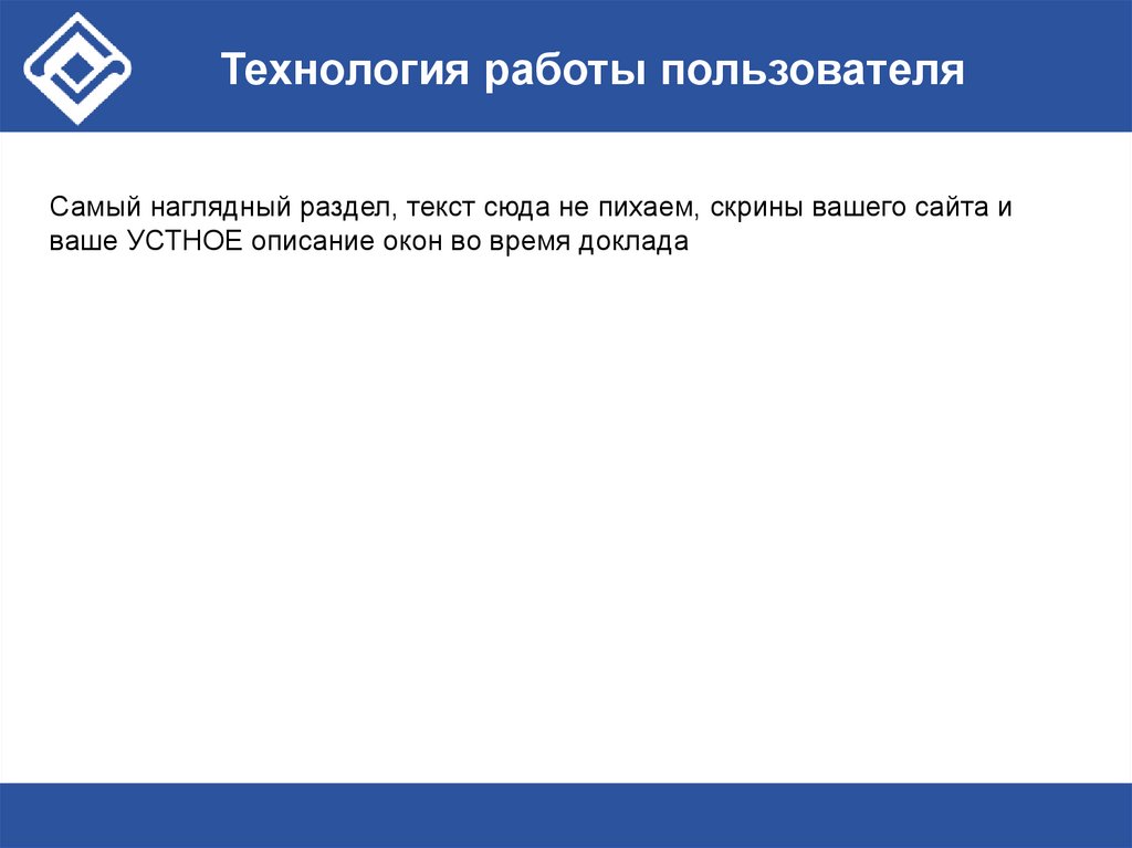 Технология работы пользователяСамый наглядный раздел, текст сюда не пихаем, скрины вашего сайта и