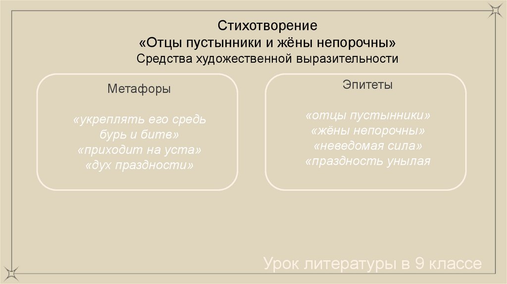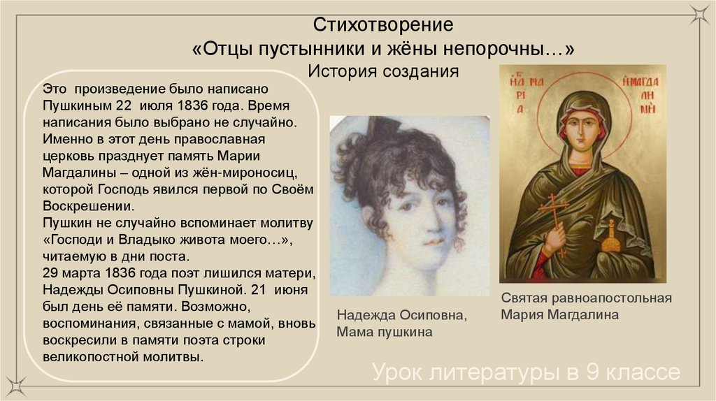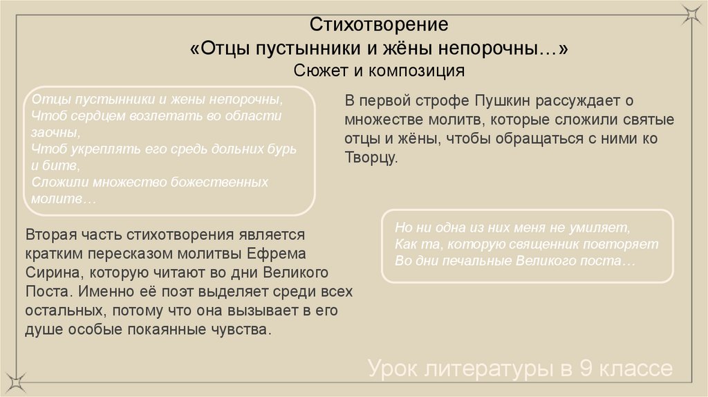 Стихотворение«Отцы пустынники и жёны непорочны…»