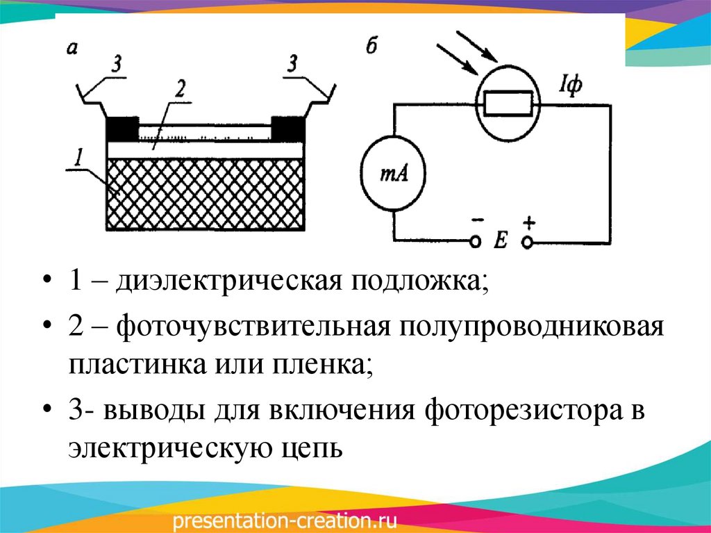 • 1 – диэлектрическая подложка;• 2 – фоточувствительная полупроводниковая