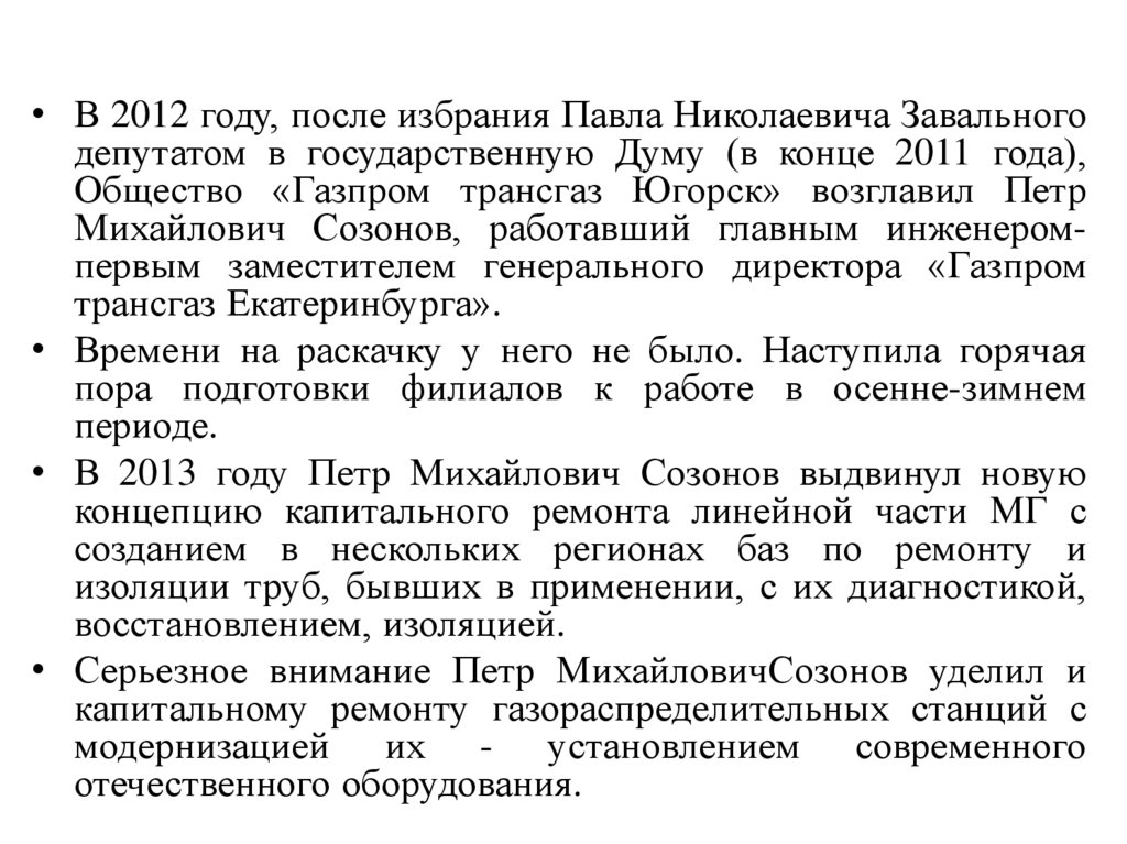 Михайлович Созонов, работавший главным инженеромпервым заместителем генерального директора «Газпром