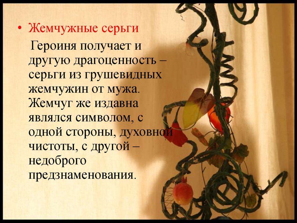 • Жемчужные серьгиГероиня получает и
