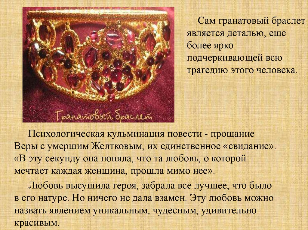 Сам гранатовый браслетявляется деталью, еще