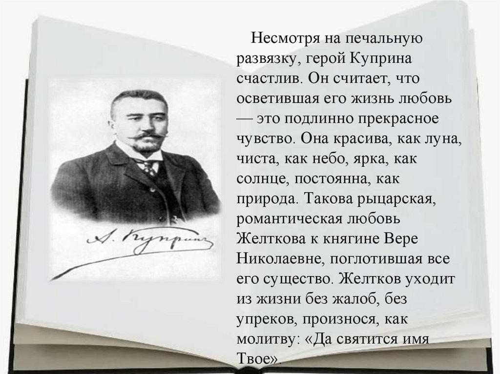 Несмотря на печальнуюразвязку, герой Куприна