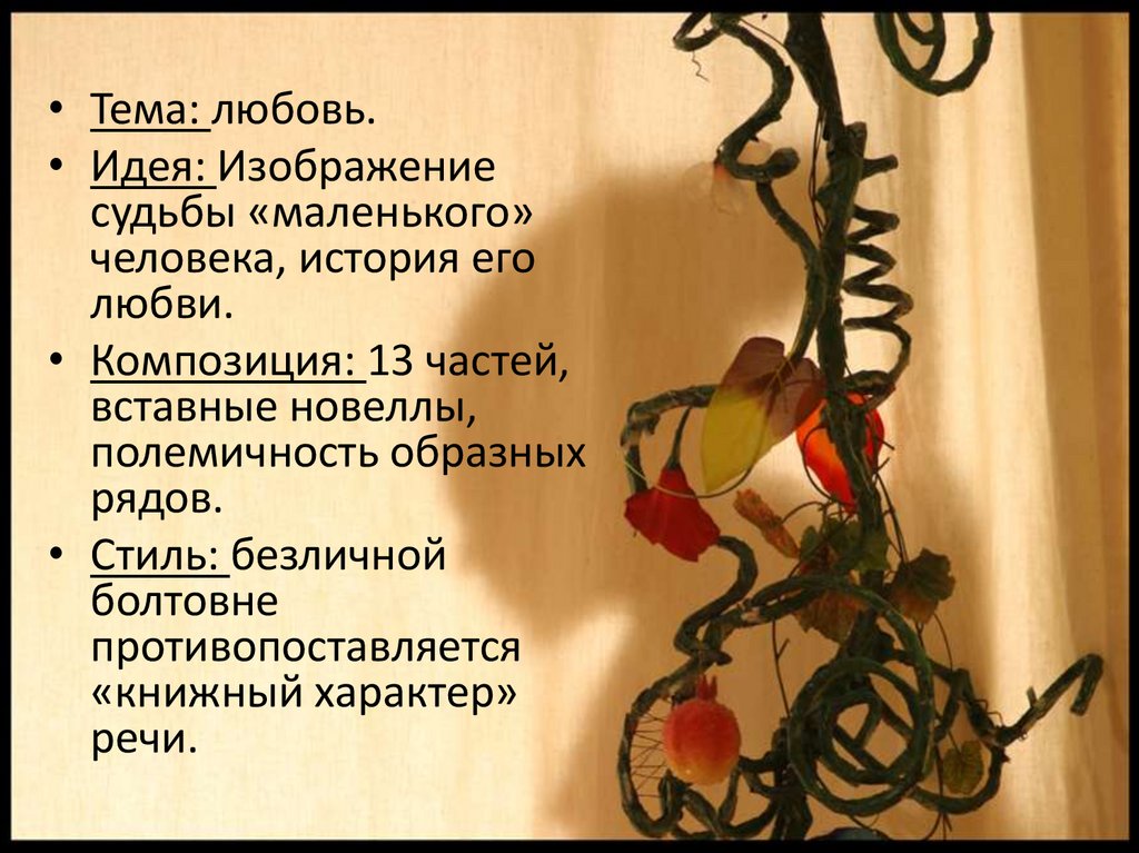• Тема: любовь.• Идея: Изображение