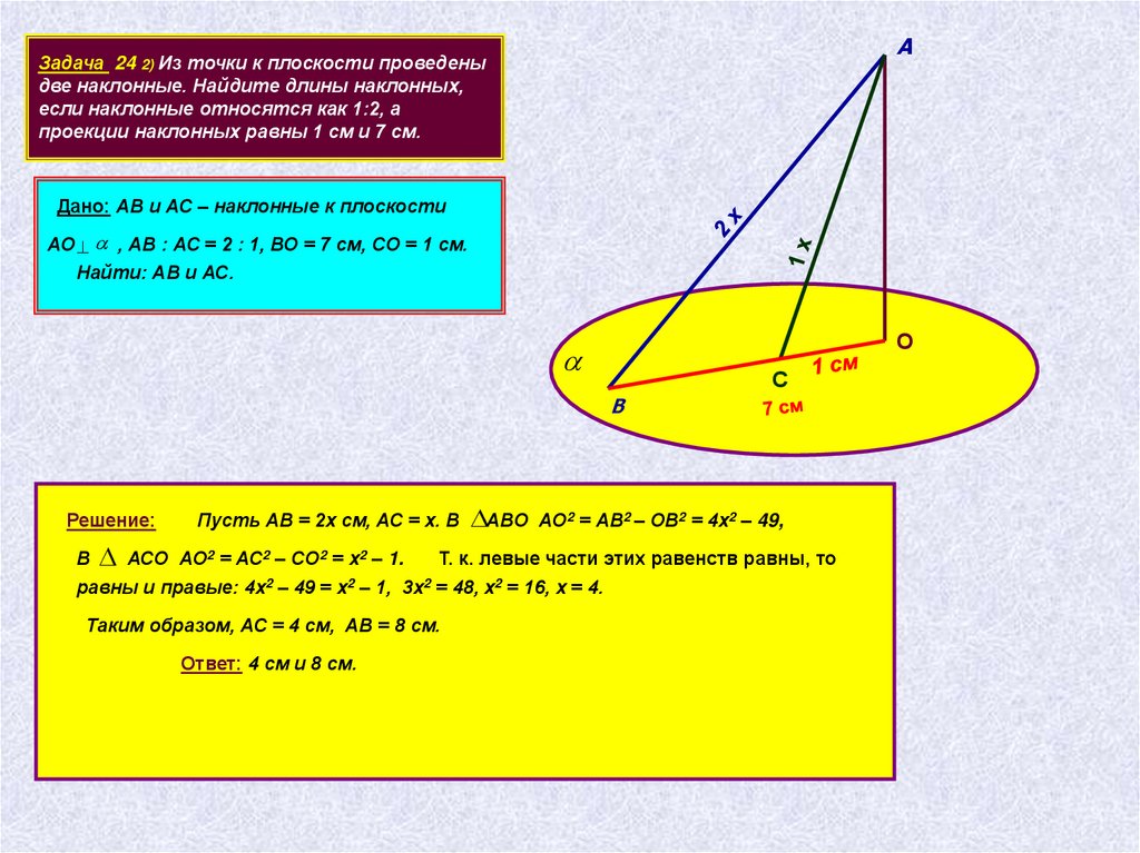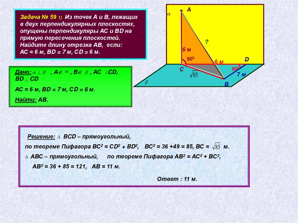 Задача № 59 1) Из точек А и В, лежащихв двух перпендикулярных плоскостях,