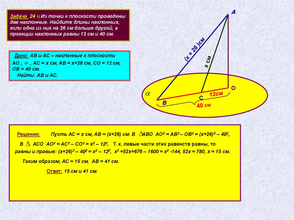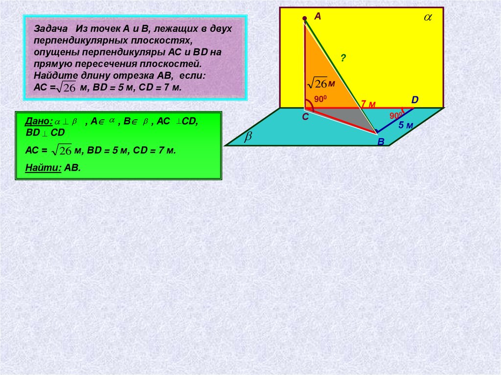 АС = 26 м, ВD = 5 м, СD = 7 м.
