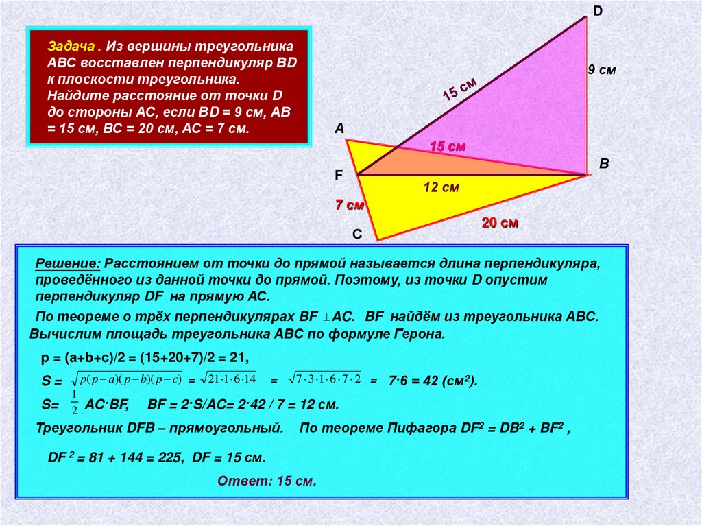если ВD = 9 см, АВ = 15 см, ВС = 20 см, АС = 7 см.
