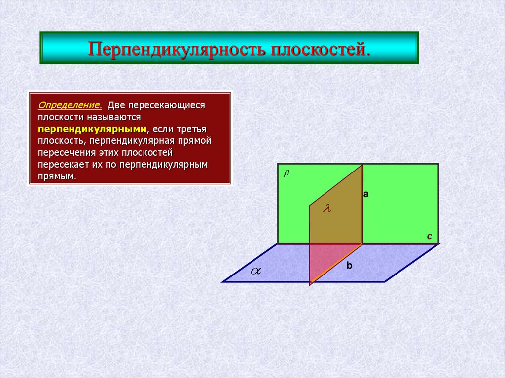 Перпендикулярность плоскостей.Определение. Две пересекающиеся