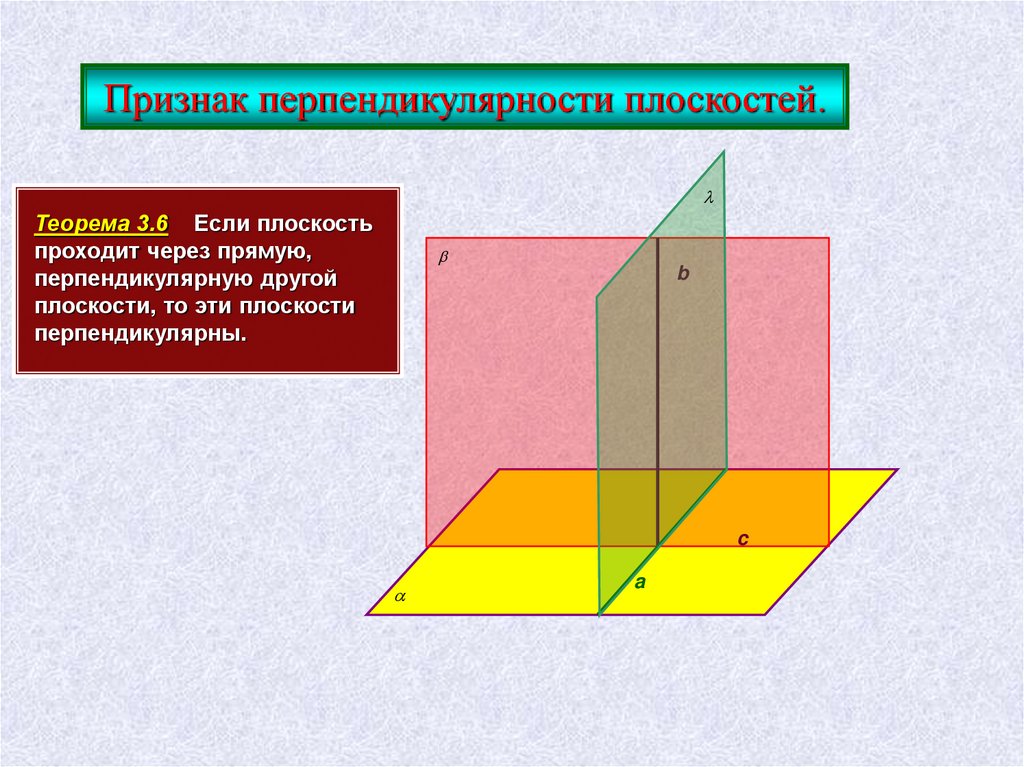 Признак перпендикулярности плоскостей.Теорема 3.6 Если плоскость