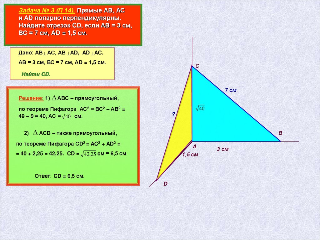 Задача № 3 (П 14). Прямые АВ, АСи AD попарно перпендикулярны.