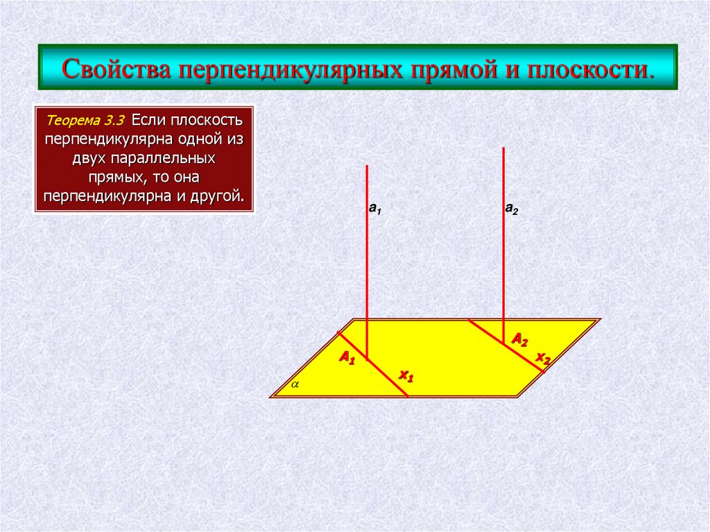 Свойства перпендикулярных прямой и плоскости.Теорема 3.3 Если плоскость