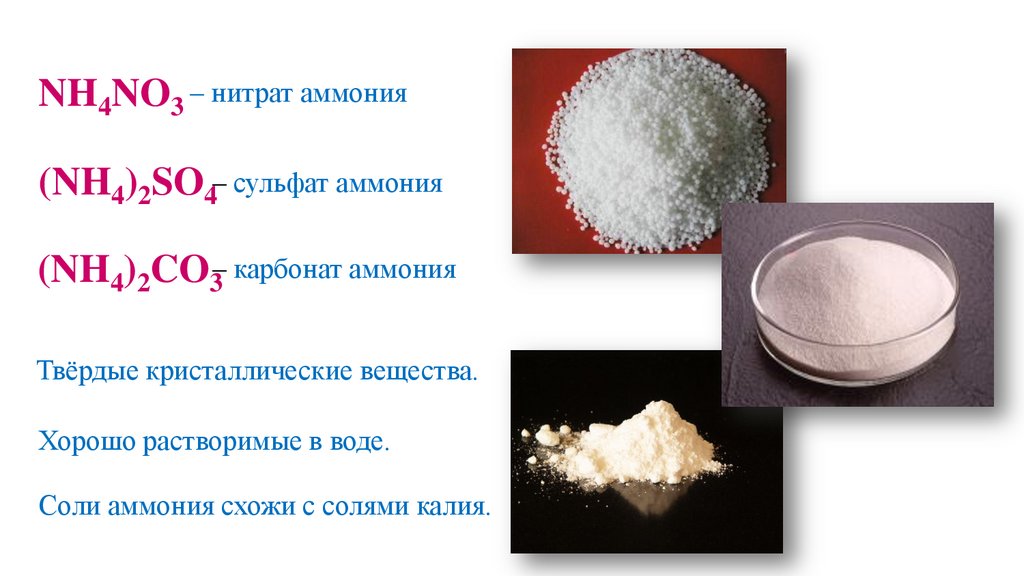 NH4NO3 – нитрат аммония(NH4)2SO4– сульфат аммония