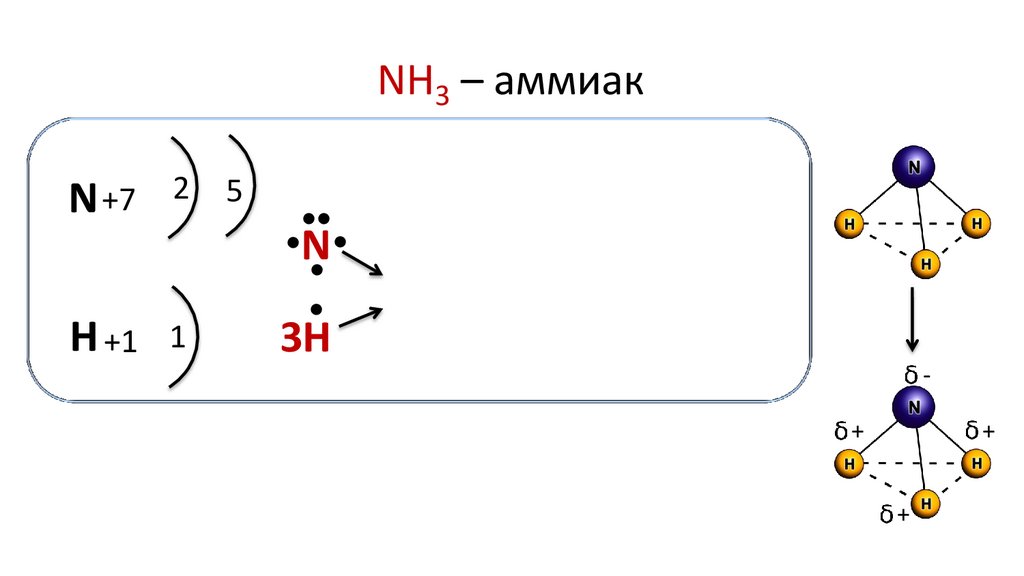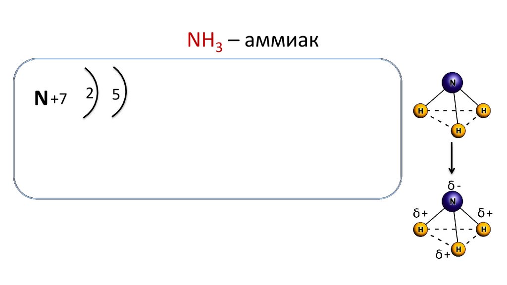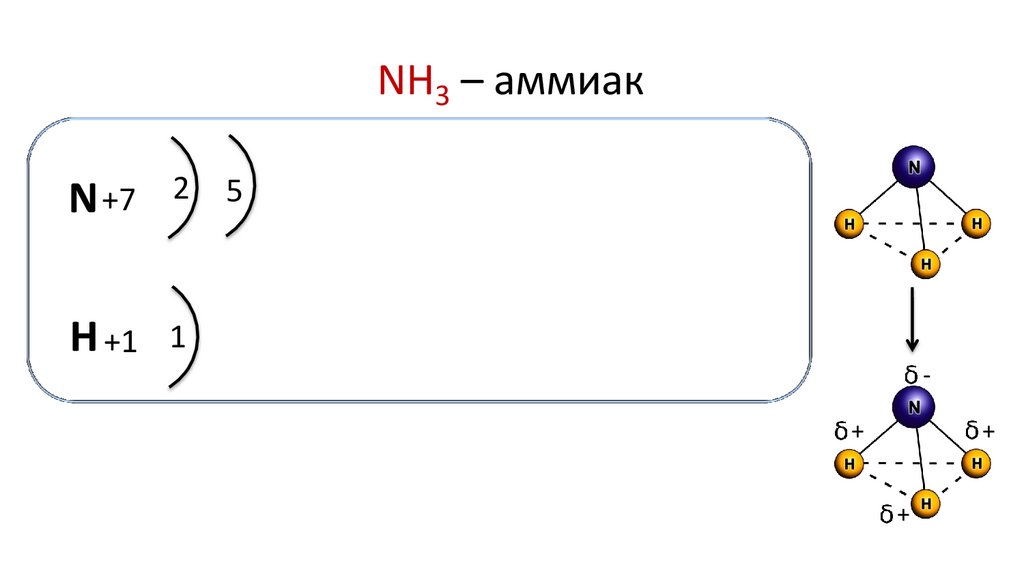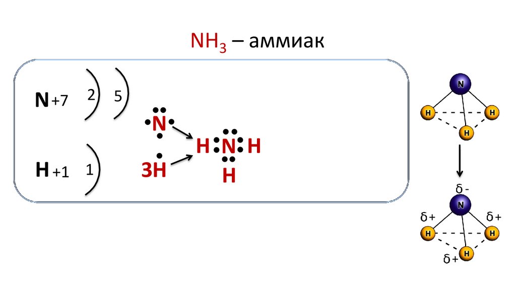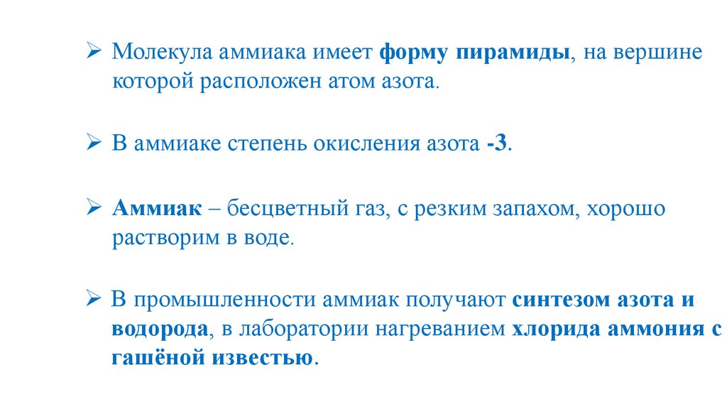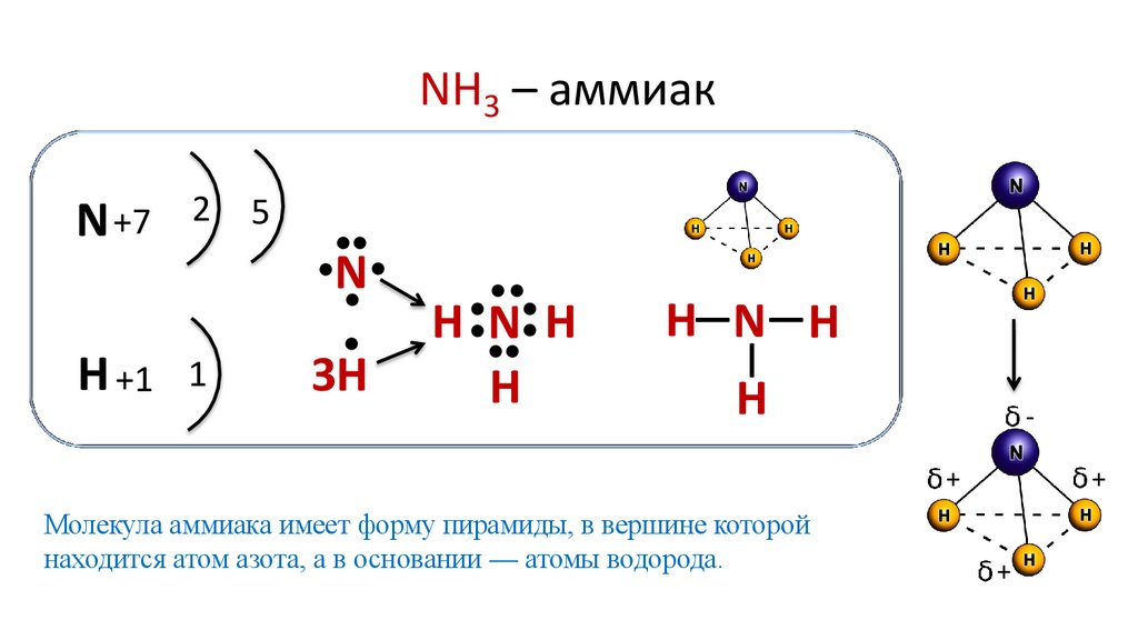 Молекула аммиака имеет форму пирамиды, в вершине которой