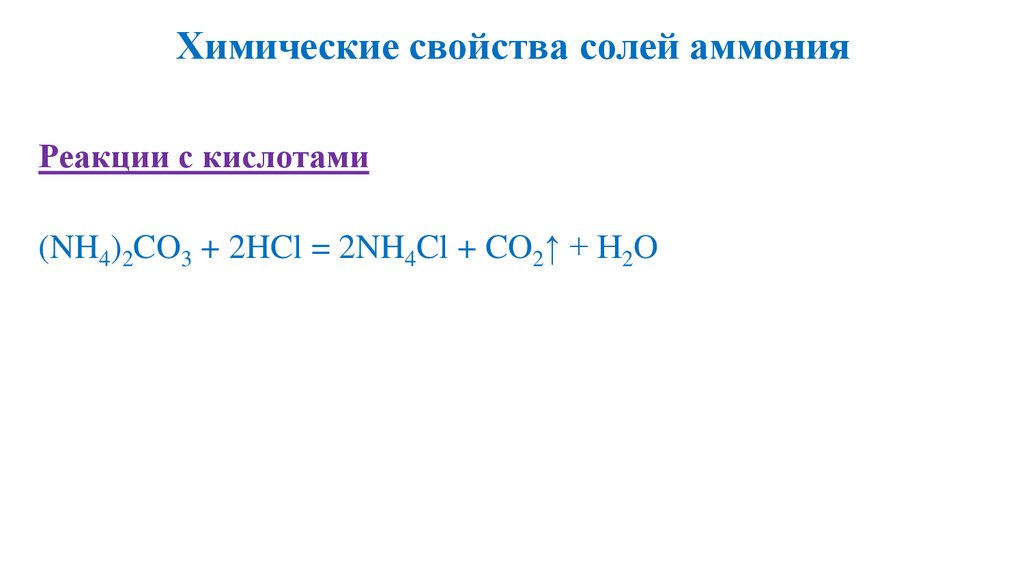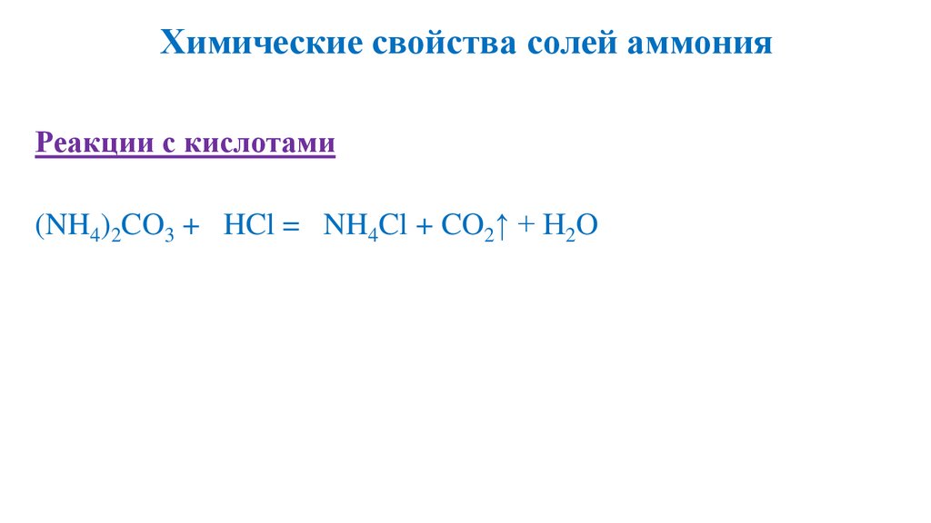 (NH4)2CO3 + 2HCl = 2NH4Cl + CO2↑ + H2O