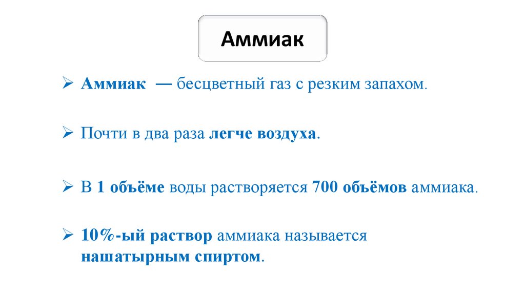 АммиакАммиак ― бесцветный газ с резким запахом.