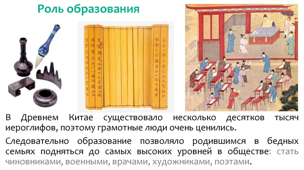 Роль образованияВ Древнем Китае существовало несколько десятков тысяч