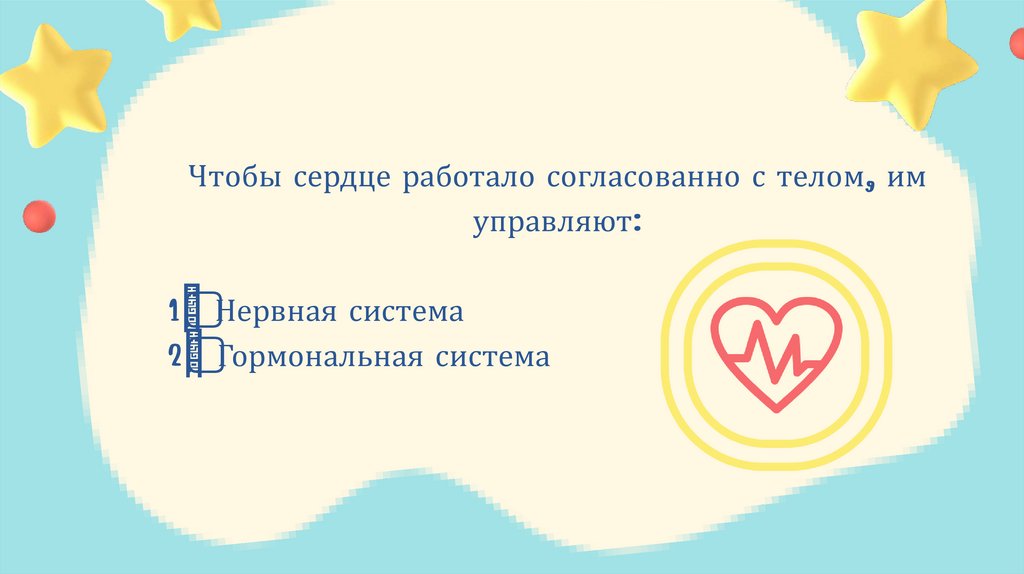 Чтобы сердце работало согласованно с телом, имуправляют: