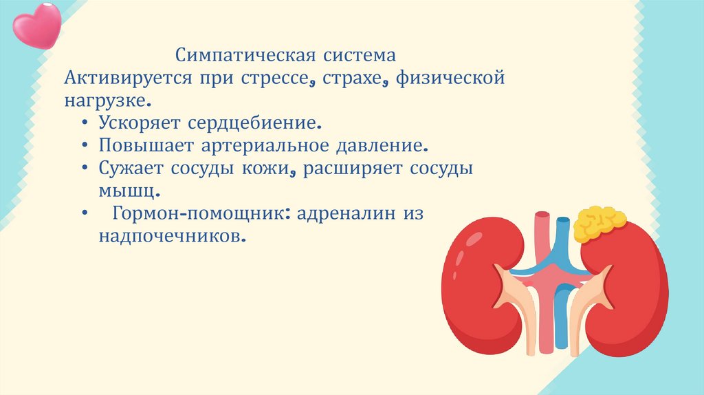 Симпатическая системаАктивируется при стрессе, страхе, физической