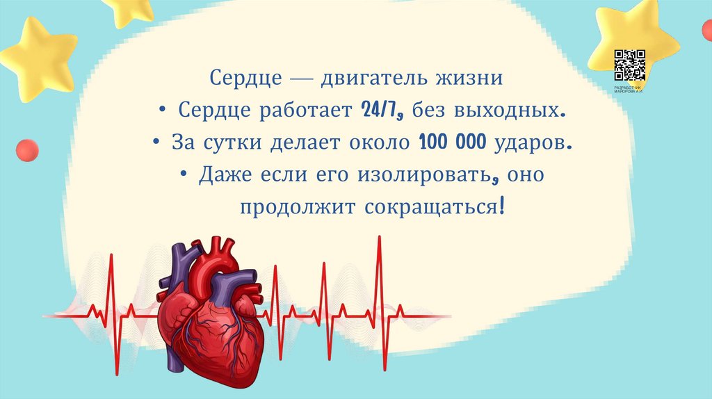 Сердце — двигатель жизни• Сердце работает 24/7, без выходных.