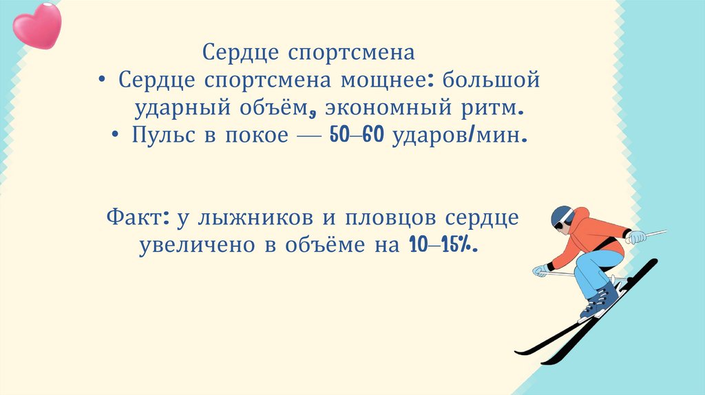 Сердце спортсмена• Сердце спортсмена мощнее: большой