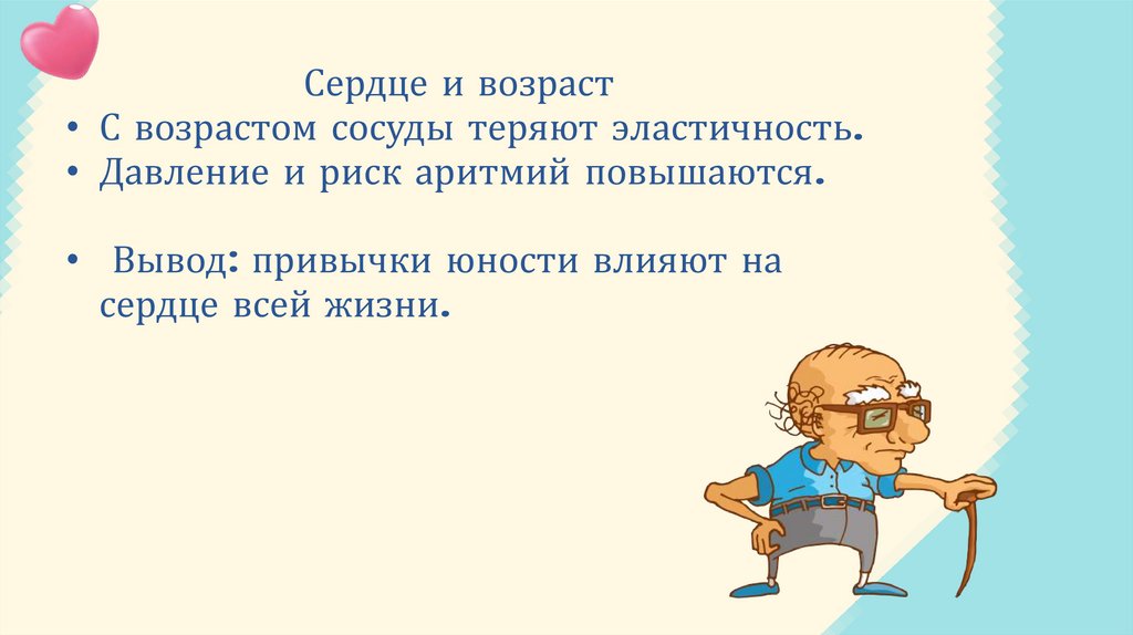 Сердце и возраст• С возрастом сосуды теряют эластичность.