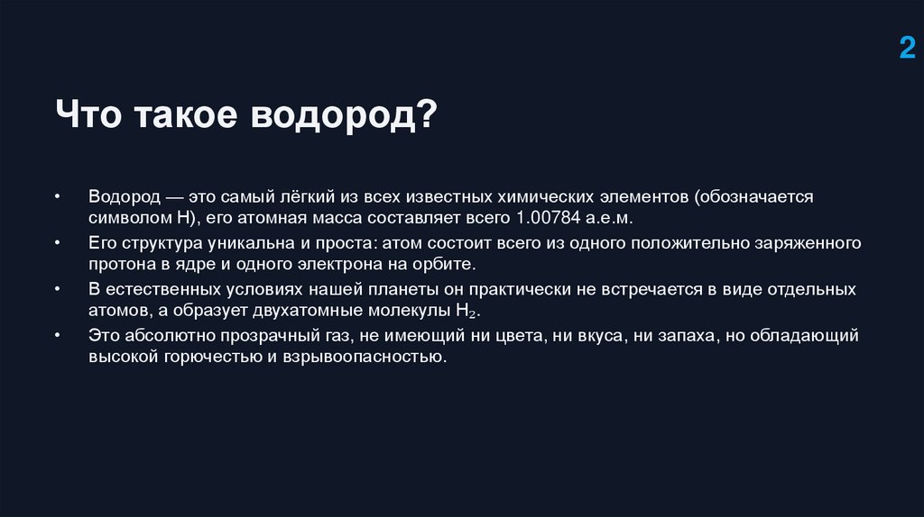 Водород — это самый лёгкий из всех известных химических элементов (обозначается
