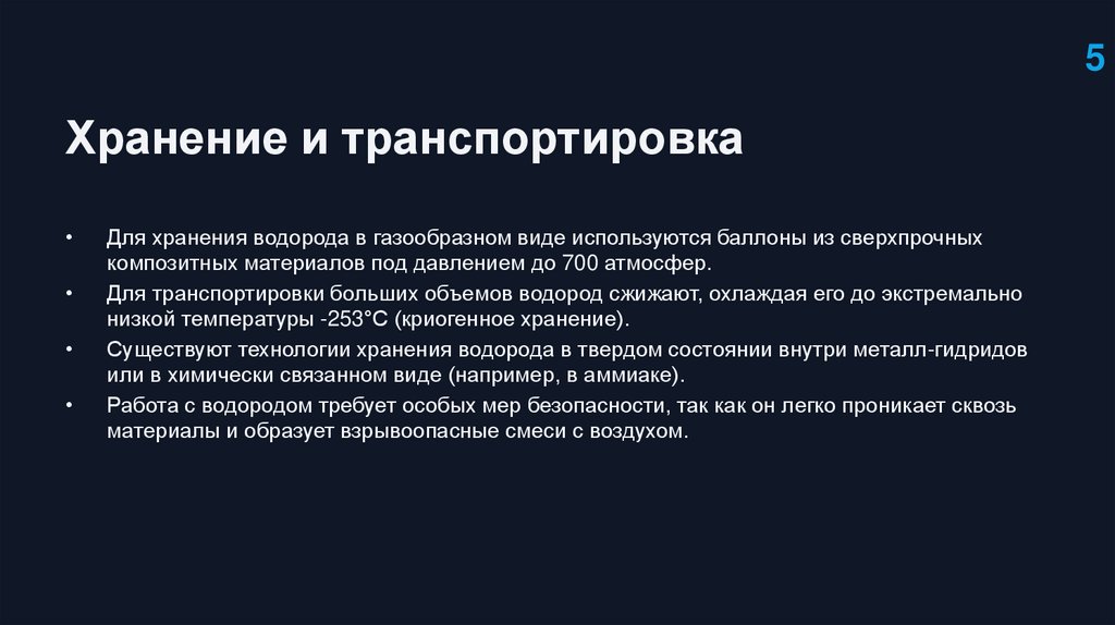 Существуют технологии хранения водорода в твердом состоянии внутри металл-гидридов