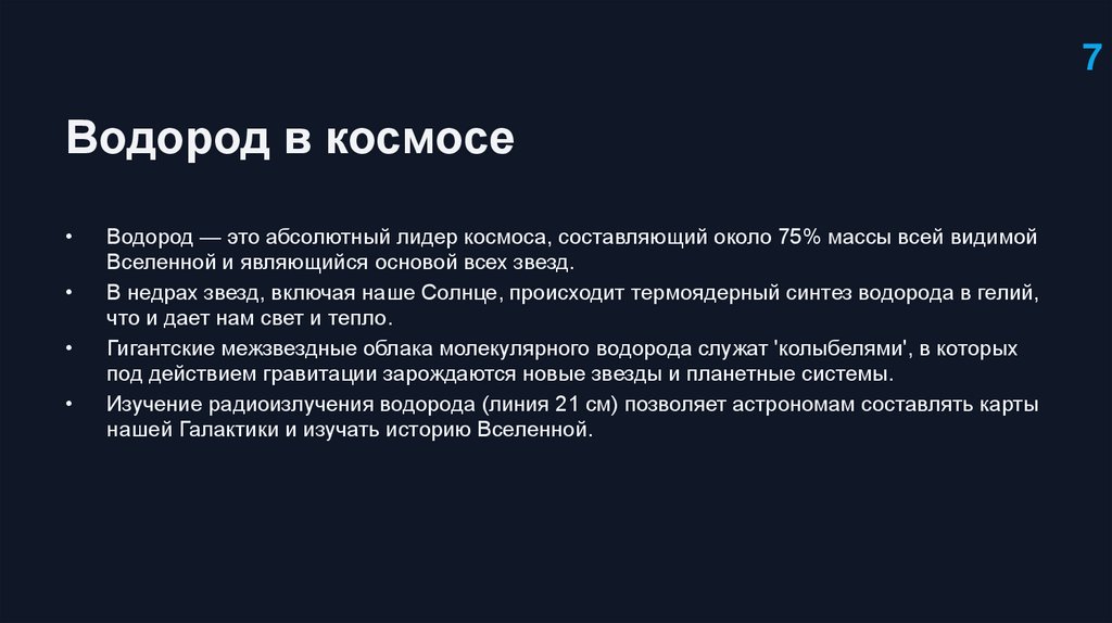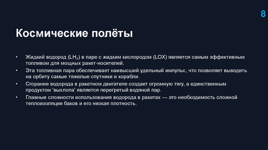 во Вселенной — водорода, его свойствам и роли в космонавтике.