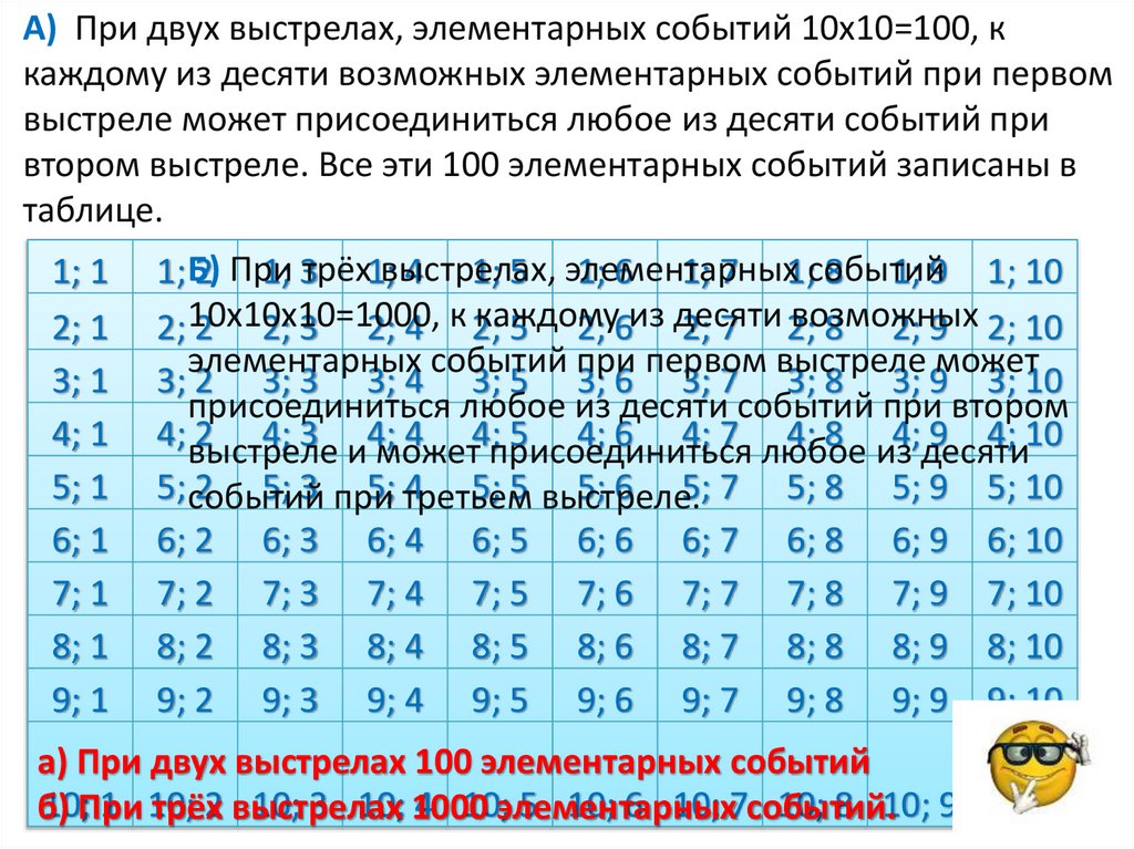 втором выстреле. Все эти 100 элементарных событий записаны в