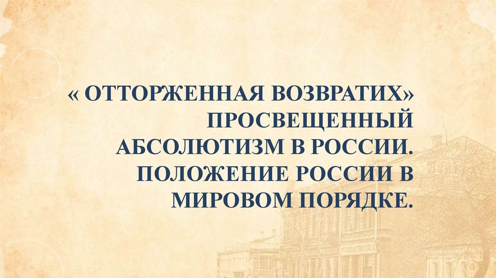 1. « Отторженная возвратих» Просвещенный абсолютизм в России. Положение России в мировом порядке.