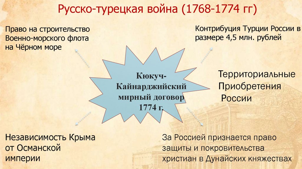Русско-турецкая война (1768-1774 гг)Контрибуция Турции России в