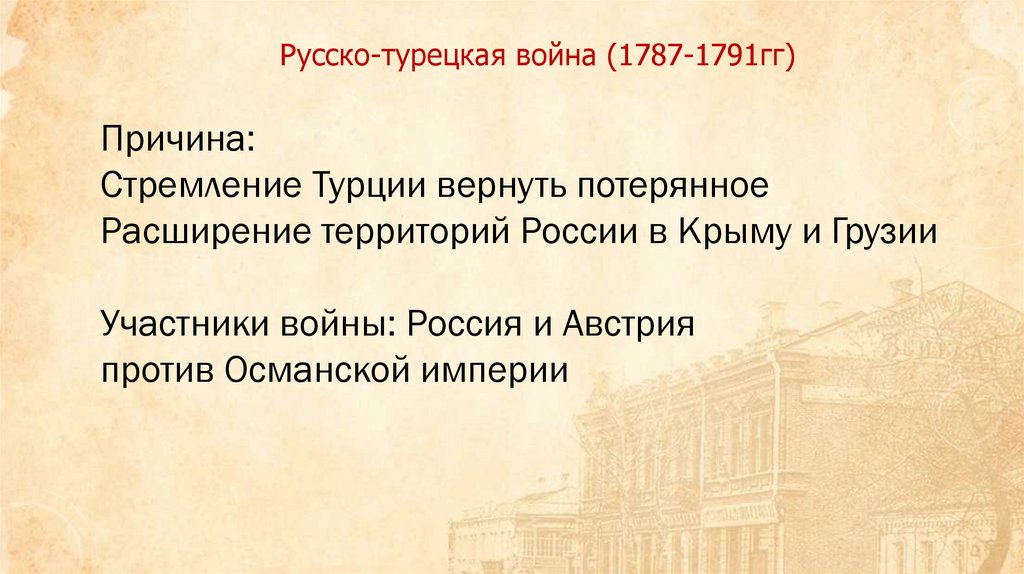 Русско-турецкая война (1787-1791гг)Причина: