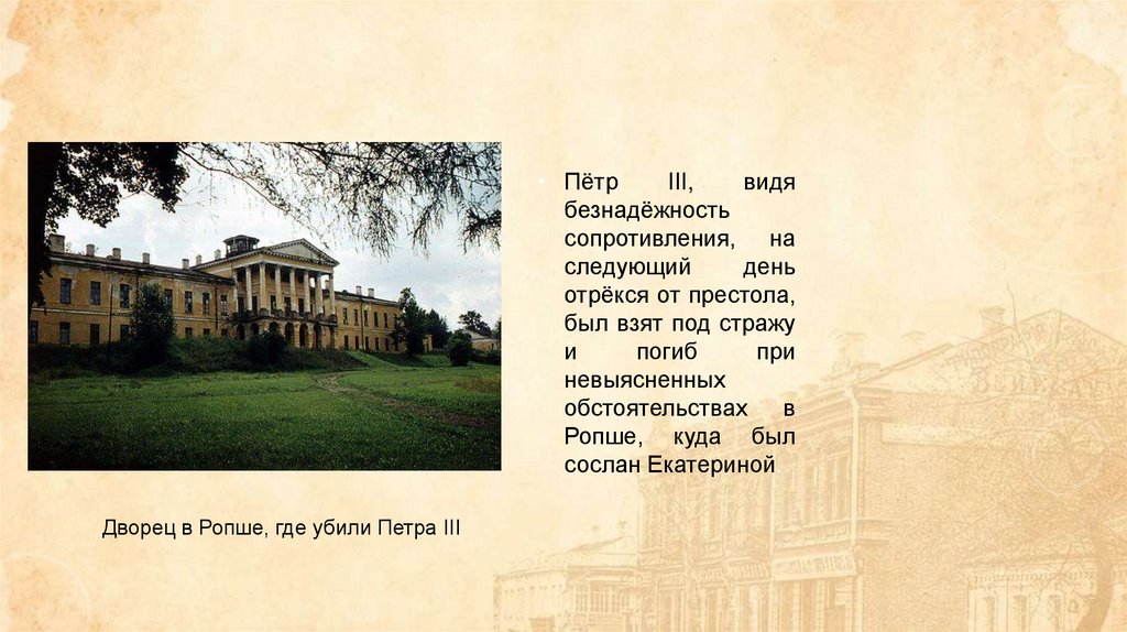 Дворец в Ропше, где убили Петра III